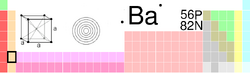 | Nombre, símbolo, número | Bario, Ba, 56 | ||||||||||||||||||||||||||||||||||||||||||||||||||||||
