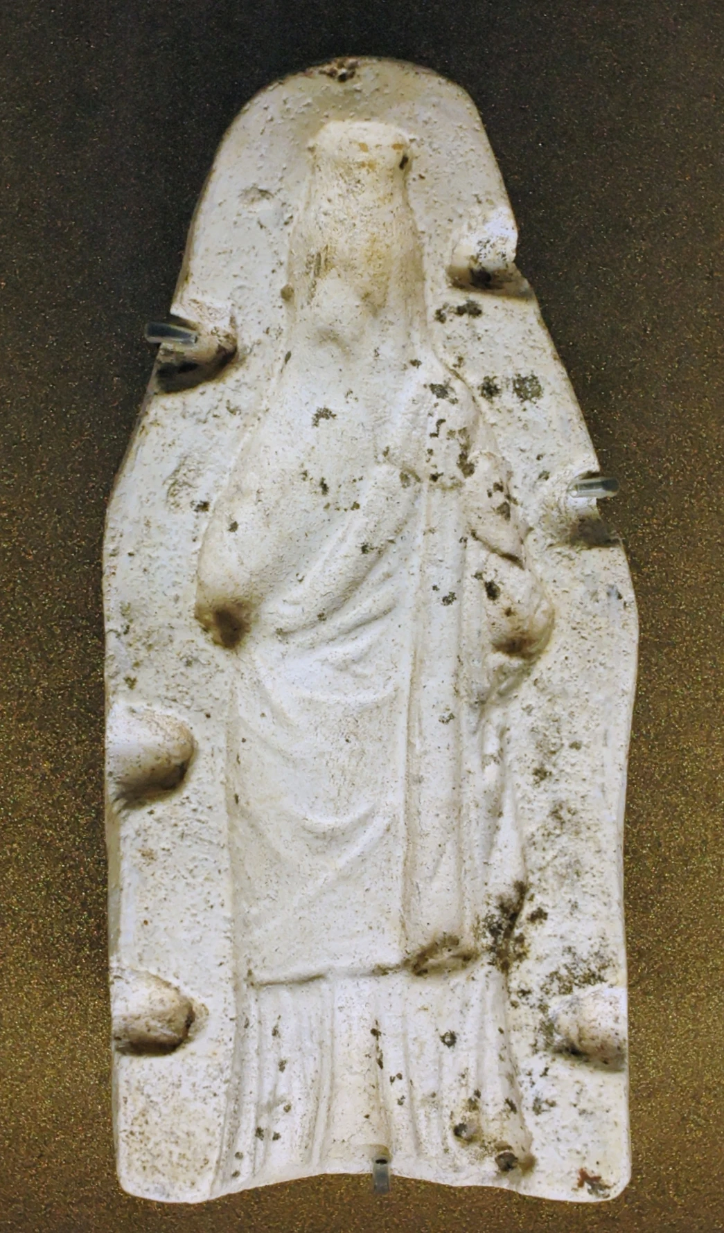 Molde de yeso del reverso de una figurilla de Deméter-Isis.