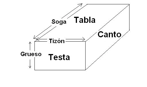 Nomenclatura de las partes de un ladrillo.