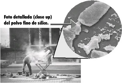 Consiste en la fibrosis nodular de los pulmones y la dificultad para respirar causadas por la inhalación prolongada de compuestos químicos que contienen sílice cristalina. Con frecuencia produce la muerte, causada por respirar polvo que contiene partículas muy pequeñas de sílice cristalina. La exposición a sílice cristalina se puede presentar durante la minería, metalurgia, industria relacionada con químicos, pinturas, cerámicas, mármol, vidrieras y con menor frecuencia las industrias de filtros, aisladores, pulimentos, tuberías, termoaislantes, construcción y mampostería. Actividades como cortar, romper, aplastar, perforar, triturar o cuando se efectúa la limpieza abrasiva de estos materiales pueden producir el polvo fino de la sílice. También puede estar en la tierra, en el mortero, en el yeso y en las ripias. Las partículas muy pequeñas de polvo de sílice pueden estar en el aire que se respira y quedar atrapadas en los pulmones. Las partículas y fibras más pequeñas son las más peligrosas dado que son las que pueden alcanzar los bronquios, generalmente se considera que este tamaño por debajo del cual se presenta el riesgo de sufrir silicosis se da para partículas inferiores a las 5 micras. A medida que el polvo se acumula en sus pulmones, estos sufren daños y se hace más difícil respirar con el paso de los años.