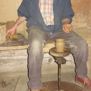 - ↑ An illustration from the Encyclopaedia Biblica, a 1903 publication which is now in the public domain. Fig. 8 for article "Pottery". Image of an Egyptian foot-turned potter's wheel. From the Hellenistic era (under the Ptolemys). Note that there are two stones. Slight amount of colour added by uploader